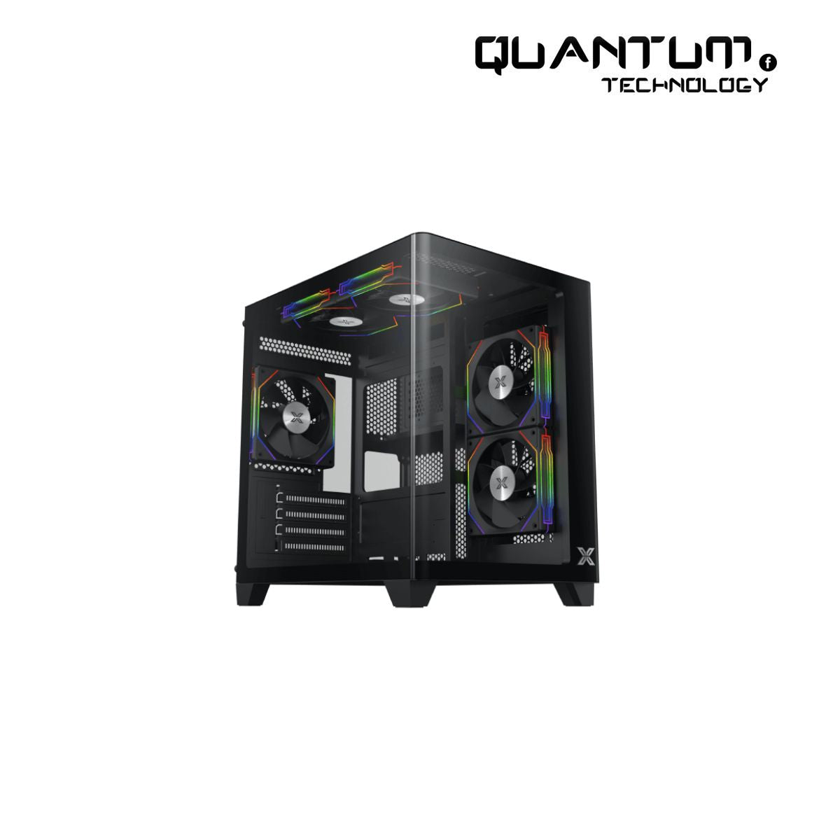 The Xigmatek Pano M Nano is a compact panoramic-style PC case designed to showcase your hardware with maximum visibility and airflow. Featuring dual tempered glass panels and five pre-installed ARGB fans, this xigmatek panoramic gaming case delivers both stunning visuals and efficient cooling for modern gaming and performance PC builds. Compatible components and upgrades are available at Quantum Technology.