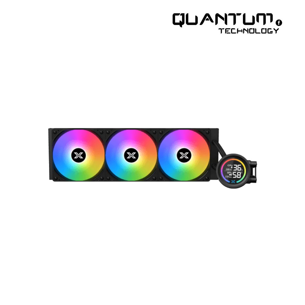 The Xigmatek LK 360 Digital ARGB AIO Digital Segment LCD Liquid CPU Cooler combines cutting-edge cooling technology with striking visual elements. Designed for maximum performance, it features a 360mm radiator paired with three 120mm ARGB fans for superior airflow and efficient heat dissipation. Whether you're running high-end games, rendering, or overclocking your CPU, this cooler delivers the cooling power you need to maintain stable temperatures. The standout feature of this cooler is the Digital Segment LCD display integrated into the pump head. This dynamic display shows essential system information in real time, including CPU temperature, pump speed, and fan speeds, giving you full control over your PC's cooling performance. The ARGB lighting system offers full customization, allowing you to synchronize with other RGB components through software like Asus Aura Sync, MSI Mystic Light, or Gigabyte RGB Fusion, creating a unified look that enhances the aesthetics of your build. Equipped with anti-leak technology and a powerful, durable pump, the Xigmatek LK 360 ensures safe operation while providing outstanding cooling performance. The universal mounting system is compatible with both Intel and AMD sockets, making installation quick and easy, while the 400mm tubing provides ample flexibility for various chassis sizes. Whether you're building a gaming rig or a content creation powerhouse, this cooler is designed to meet the most demanding thermal requirements. For more information and to explore other advanced cooling solutions, visit Quantum Technology. For further details on Xigmatek's range of products, check out Xigmatek’s Official Site.