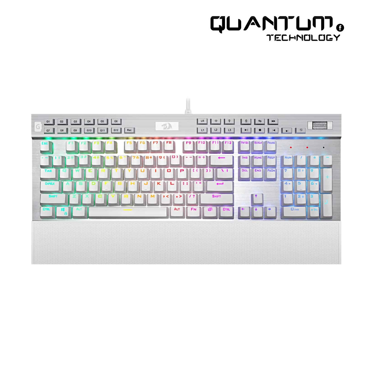 The Redragon K550 RGB Yama Gaming Mechanical Keyboard is designed for gamers, programmers, and professionals who demand precision, comfort, and versatility. Engineered for durability and responsiveness, it provides an exceptional typing and gaming experience. Equipped with Purple Mechanical Switches, the keyboard delivers a tactile and responsive feel while remaining quieter than traditional mechanical switches. This makes it an excellent choice for both competitive gaming and daily productivity. With fully customizable RGB backlighting, users can personalize their keyboard with a vast range of lighting effects and colors. Multiple dynamic presets enhance the gaming atmosphere, while brightness and speed adjustments allow for further customization. Whether you prefer a static glow or pulsating wave effects, the K550 Yama ensures that your setup looks as good as it performs. Functionality is a top priority, and the dedicated macro recording keys provide seamless control over complex commands. Users can program custom macros to execute actions instantly, giving them a competitive edge in fast-paced games. The inclusion of dedicated multimedia controls allows for quick access to volume adjustments, playback settings, and more without interrupting gameplay. The dedicated volume control wheel ensures smooth and precise audio tuning at any moment. Comfort is equally important, which is why the K550 Yama includes a detachable wrist rest for ergonomic support during extended use. Long gaming sessions and work hours become more comfortable, reducing wrist strain and fatigue. Built with premium materials, this keyboard is designed for long-term reliability. Its full N-Key rollover and anti-ghosting technology guarantee accurate key registration, even when multiple keys are pressed simultaneously. Additionally, the braided USB cable enhances durability and ensures a stable, long-lasting connection. For more gaming gear and accessories, explore Quantum Technology. Visit the official Redragon website to learn more about their latest innovations.Key Features: