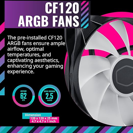 The case supports a versatile fan configuration, including up to three 120mm or two 140mm fans at the front and one 120mm fan at the rear. Additionally, it comes with three pre-installed 120mm ARGB fans that enhance both cooling performance and visual appeal. The integrated ARGB lighting can be synchronized with compatible motherboards for a fully customized lighting experience.