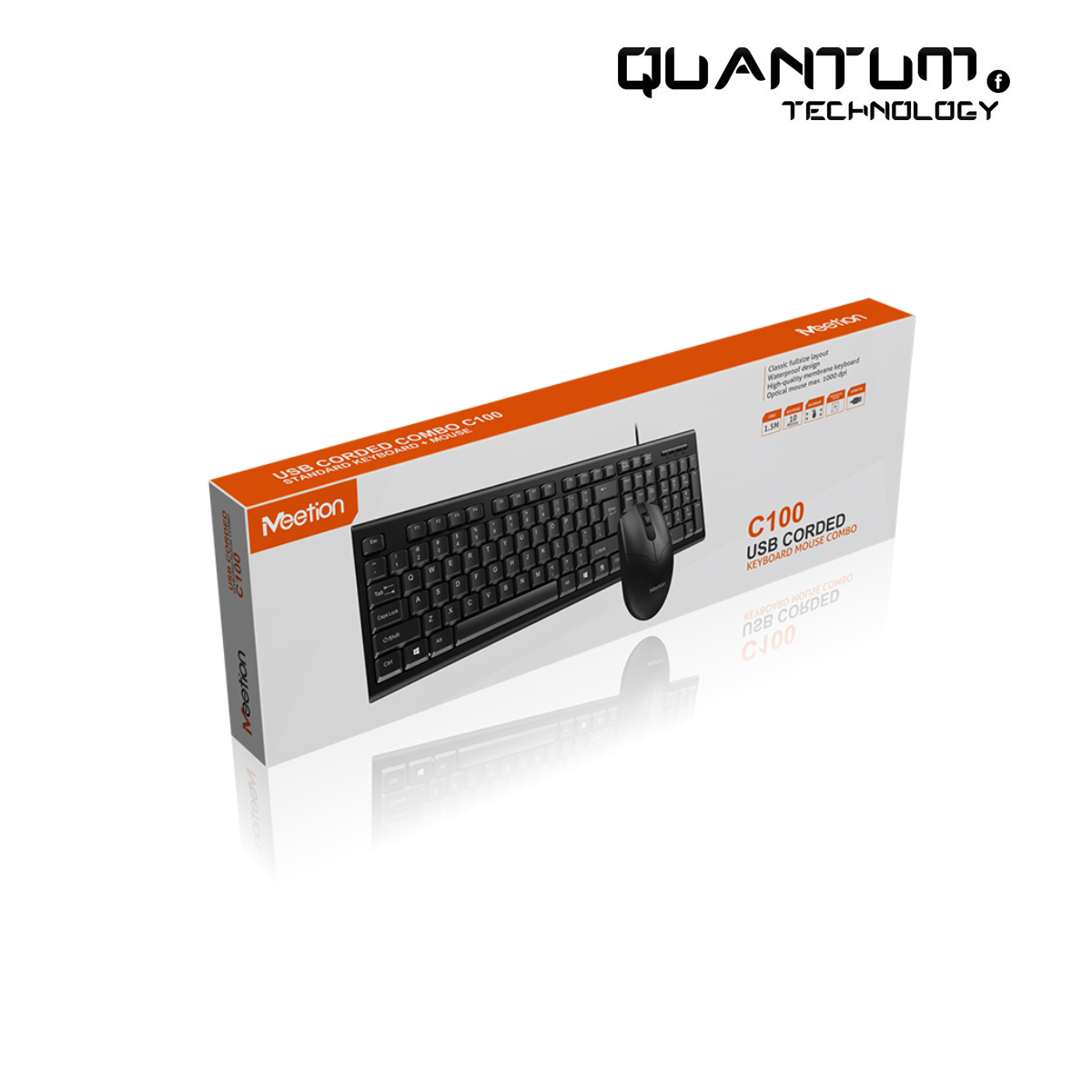 Meetion C100 Wired USB Combo – Reliable Keyboard & Mouse in Black