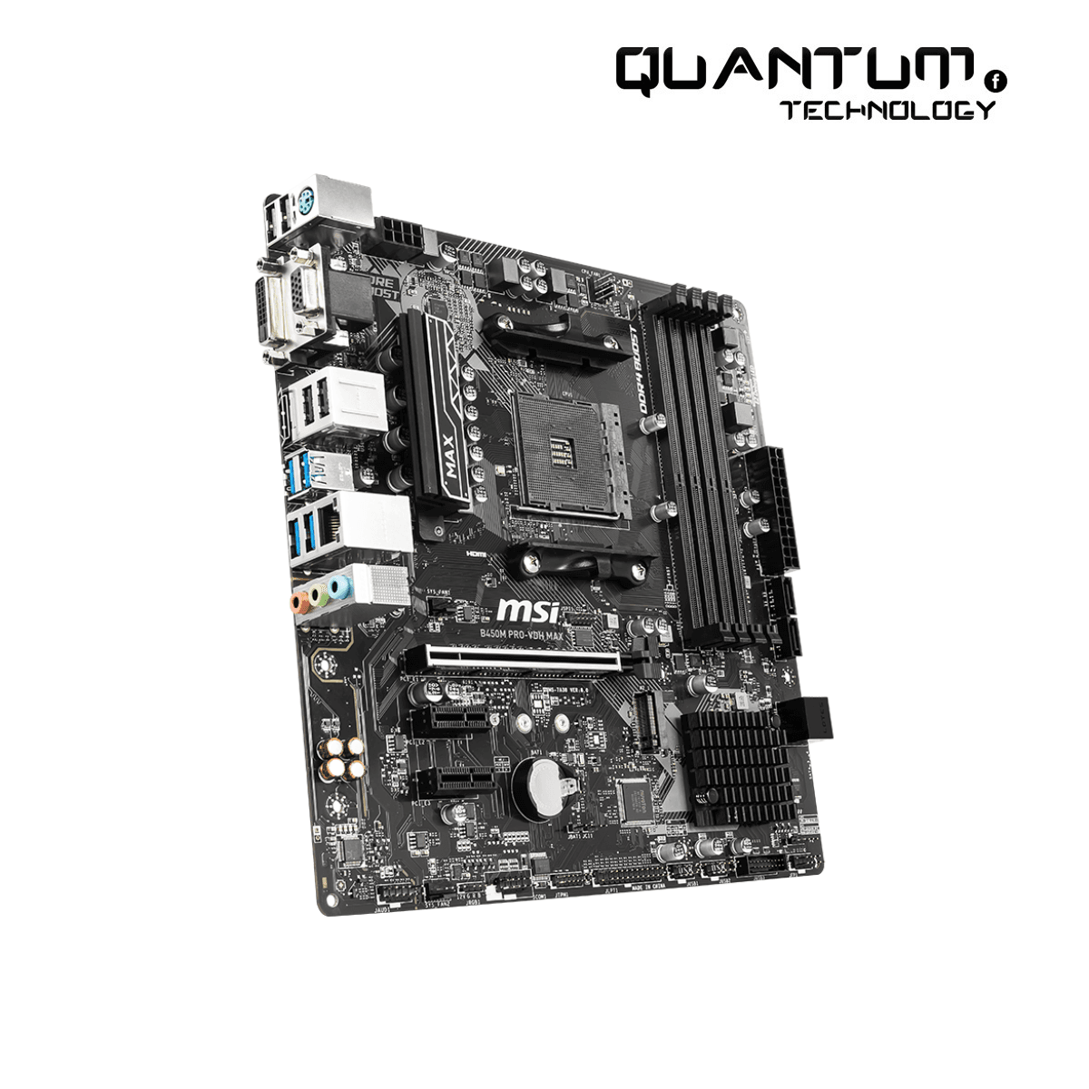 With Military Class 4 components, the MSI PRO B450M PRO-VDH guarantees durability and stability. Effective cooling solutions, including well-placed heat sinks and fan headers, keep temperatures optimal even during intensive use. - IF YOU NEED ANY HELP PLEASE CONTACT US US US USOUR FACEBOOK : https://www.facebook.com/QuantumTechnologyy/